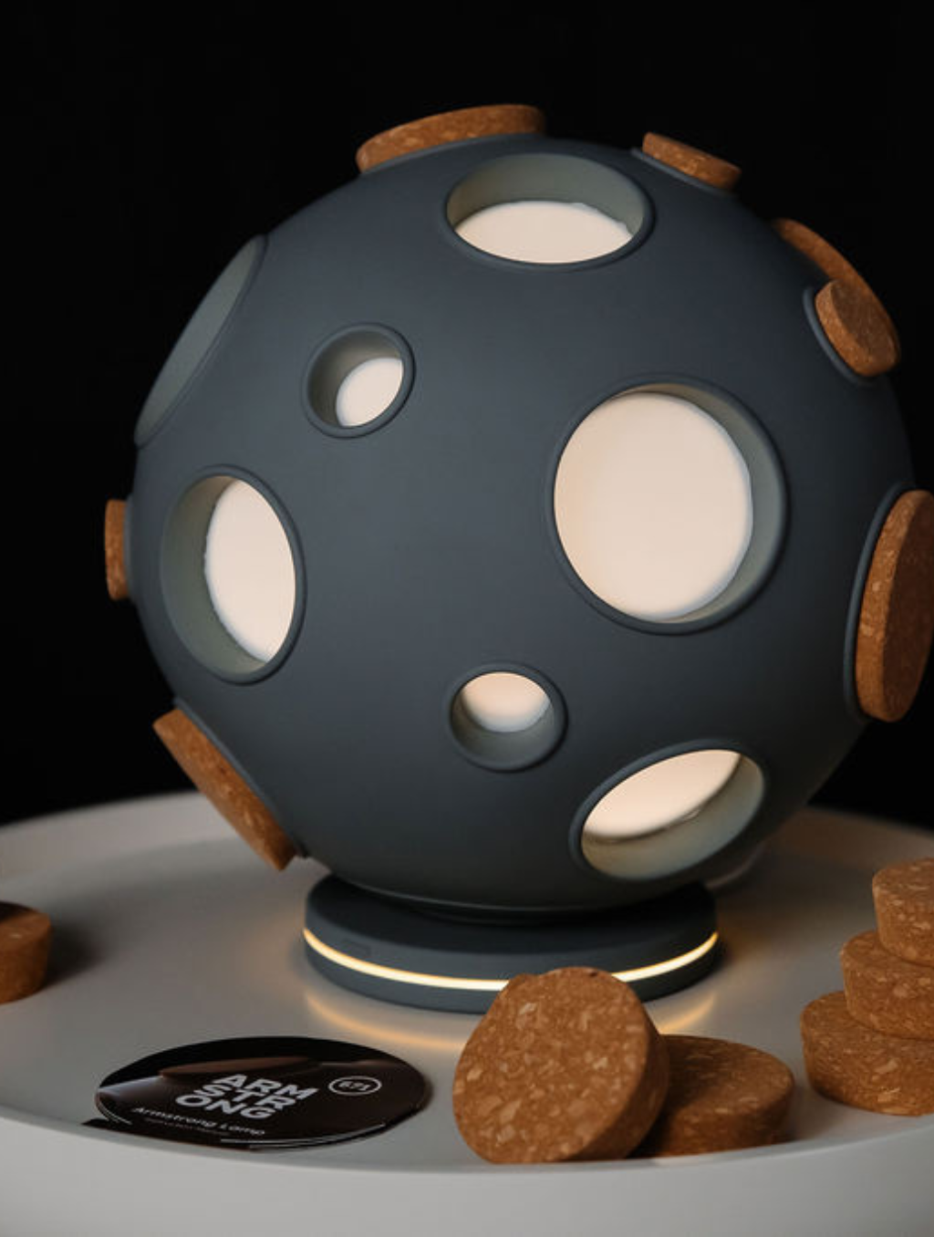 The lamp draws inspiration from the moon and space exploration, paying tribute to the spirit of discovery while bringing a futuristic, cosmic glow into everyday life.